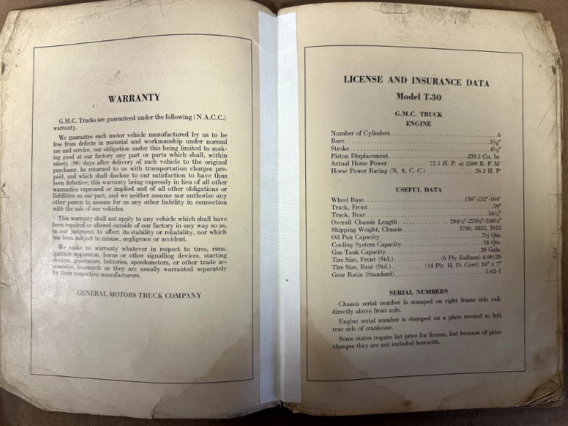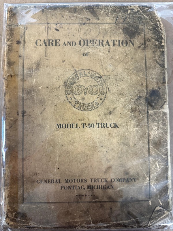 This is an original GMC sales literature piece. It features a promotional highlight for the GMC Model T-30 Trucks with gray photos.