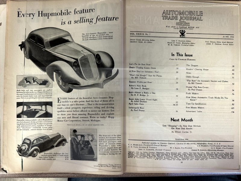 This is an original Automobile Trade Journal literature piece. It features black and white photos.