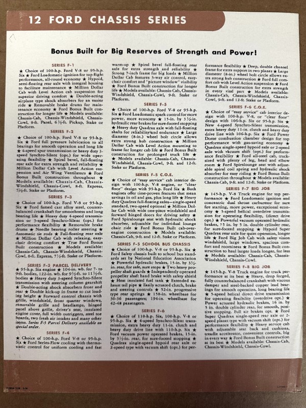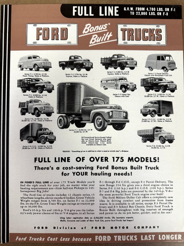 This is an original Ford literature piece. It features a highlight on Ford Trucks with colored photos.
