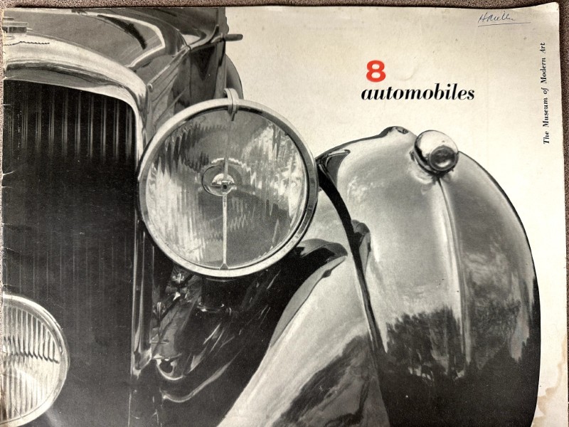 This is an original Museum of Modern Art sales literature piece. It features a highlight on 8 Automobiles with gray photos.
