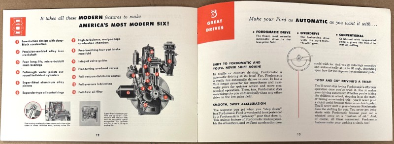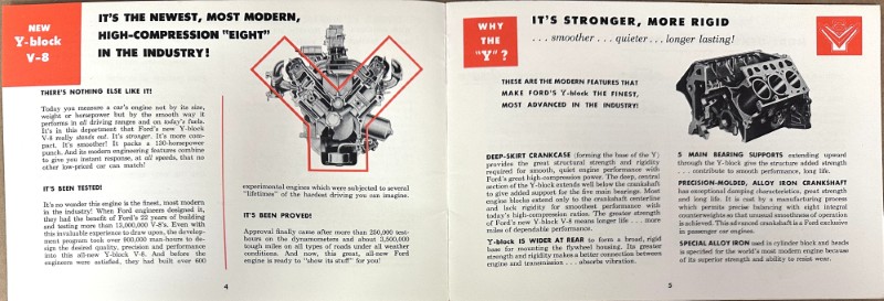This is an original Ford sales literature piece. It features a promotional highlight for the Ford with gray photos.