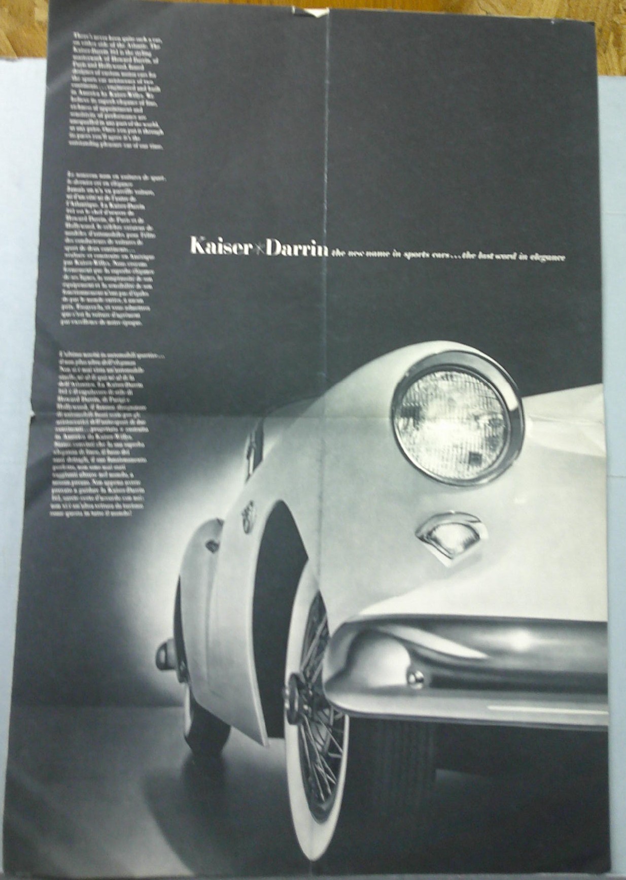 This is an original 1954 Kaiser sales folder. It highlights information on features and available options for Kaiser’s Darrin 161 lineup.