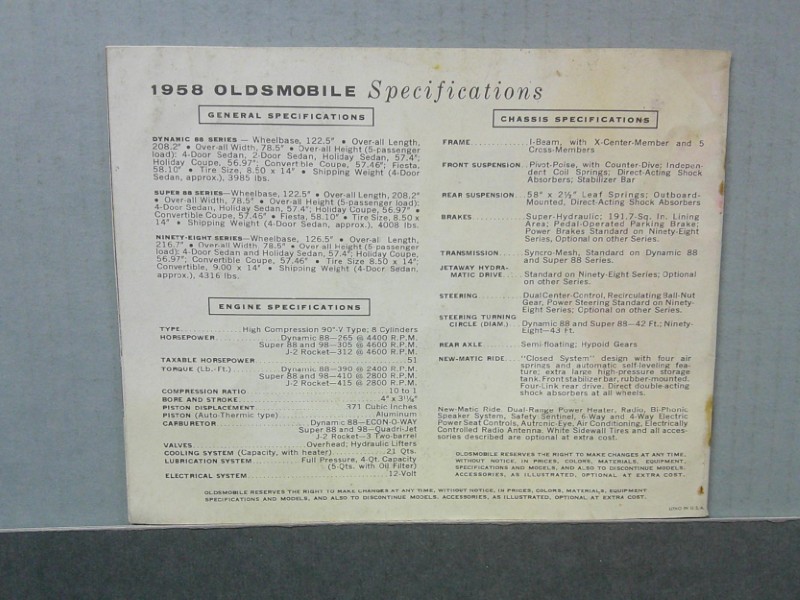 • Covers 1958 Oldsmobile models including 98 and 88