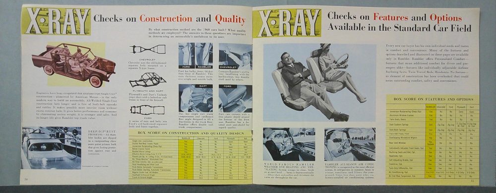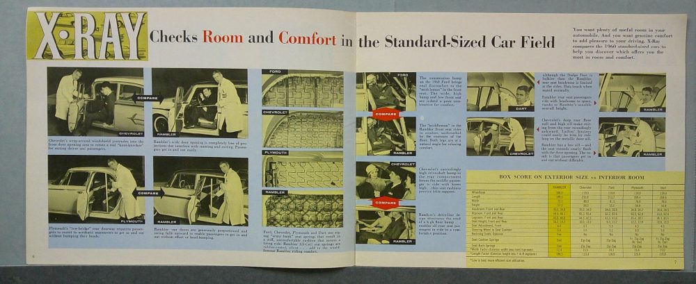 This is an original 1960 AMC Rambler X-Ray sales catalog featuring the standard-sized lineup of Rambler vehicles for the model year. It includes specifications and features.