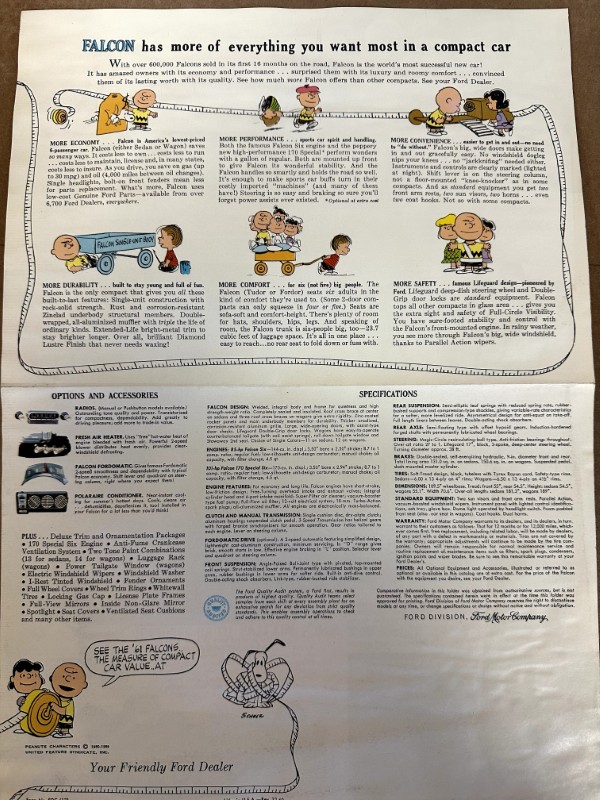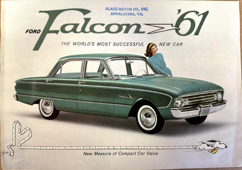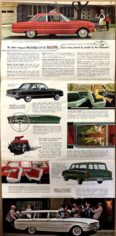 This is an original Ford sales literature piece. It features a promotional highlight for the Ford Falcon with full color photos.