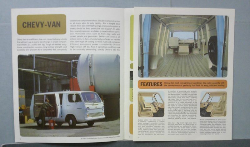 This is an original Chevrolet sales folder. It features promotional highlights for the Chevrolet Chevy-Van with full color pictures and specifications.