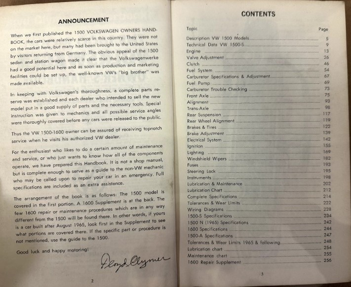 1966 Volkswagen 1600, Handbook