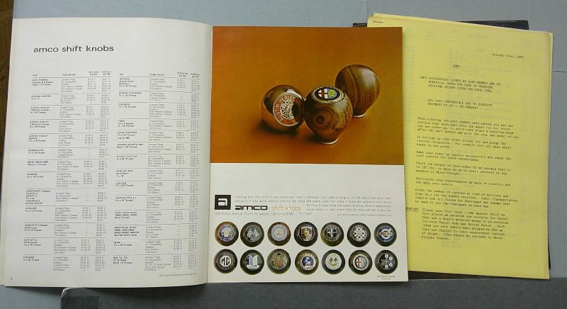 This is an original Amco sales catalog. It features accessories for sports cars.