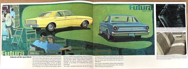 This is an original Ford sales catalog. It features a promotional highlight Ford Falcon with colored photos.