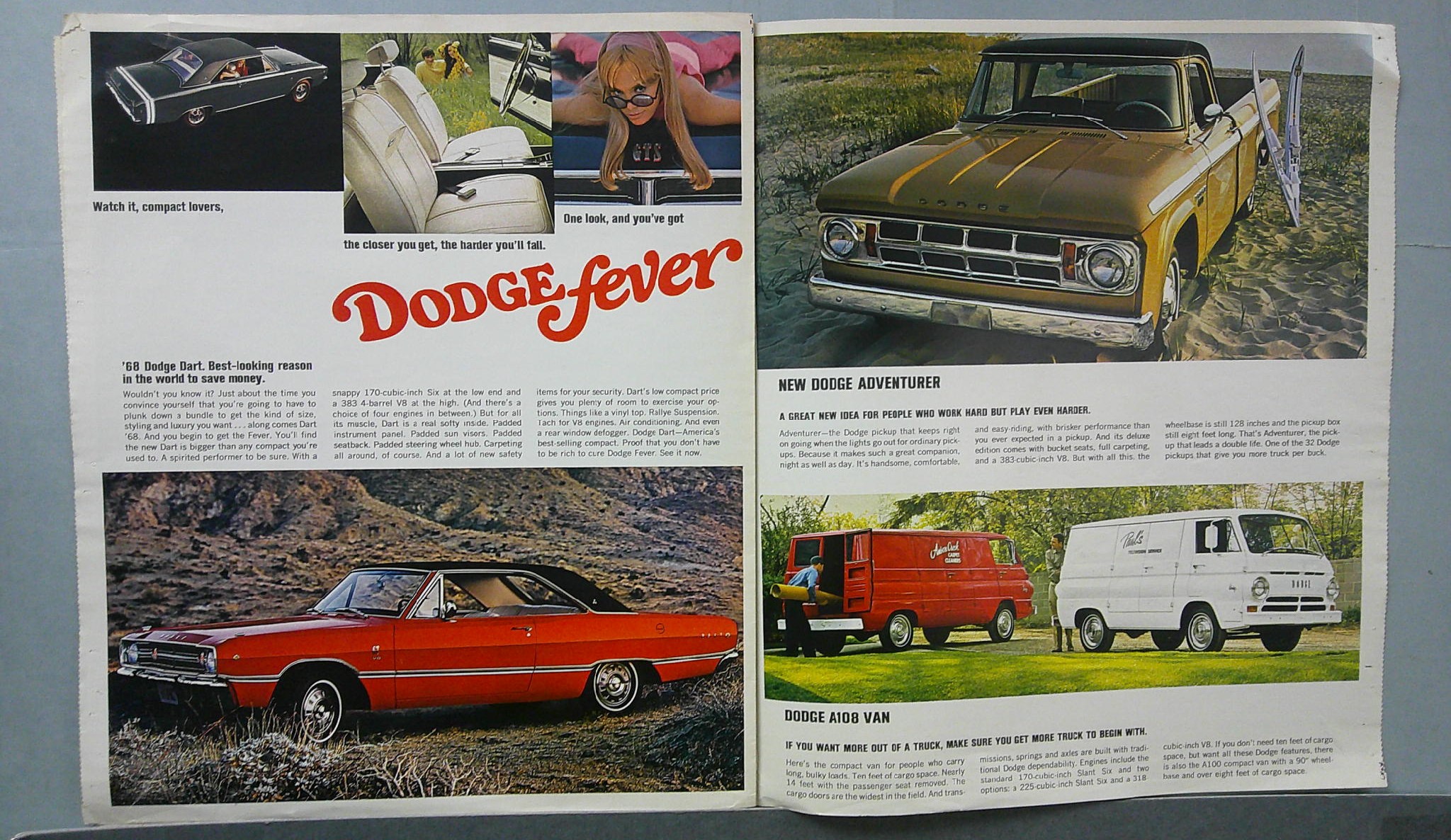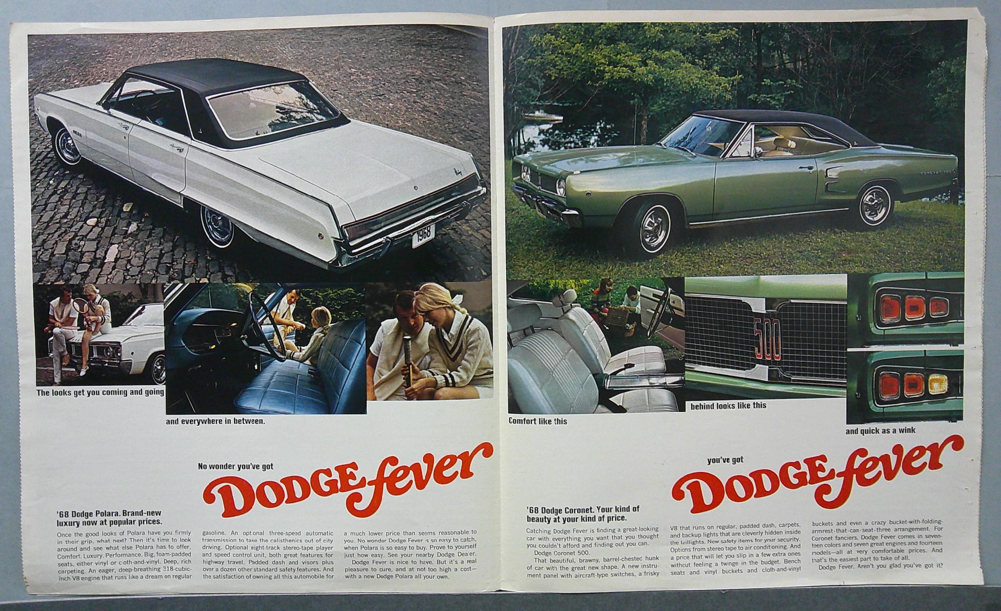 This is an original 1968 Dodge sales catalog. It highlights information on features and available options for Dodge’s 1968 lineup.