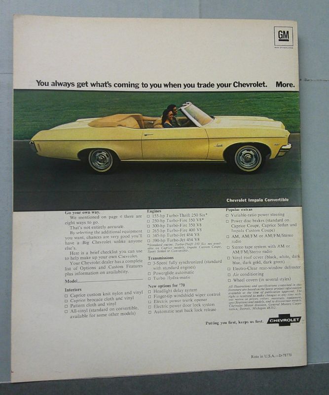 • Features 1970 Chevrolet models including Caprice, Impala and Bel Air