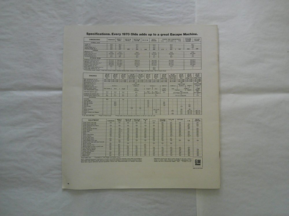 This is an original 1970 Oldsmobile sales brochure. It includes detailed information on models, features, specifications, and available options.
