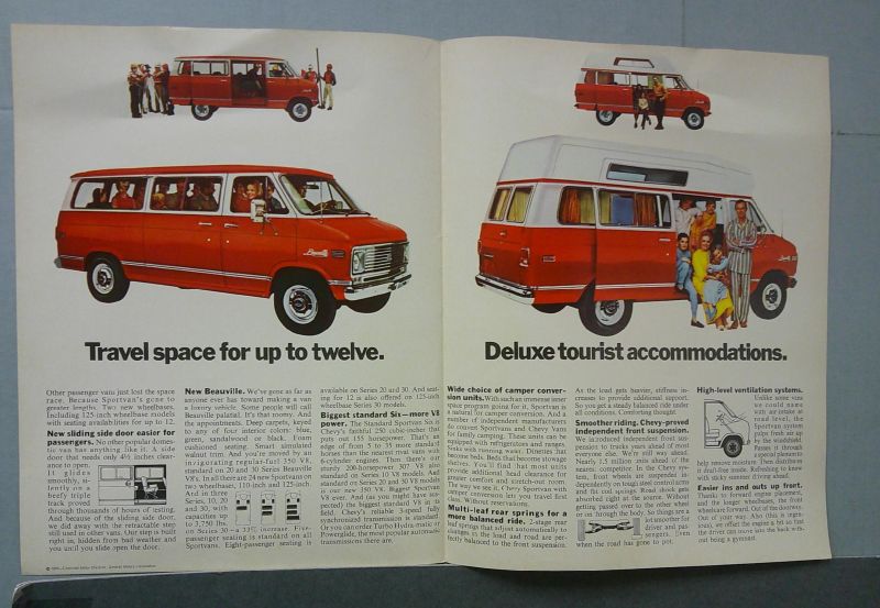 This is an original Chevrolet sales folder. It features promotional highlights for the Chevrolet Sportvan with full color pictures and specifications.