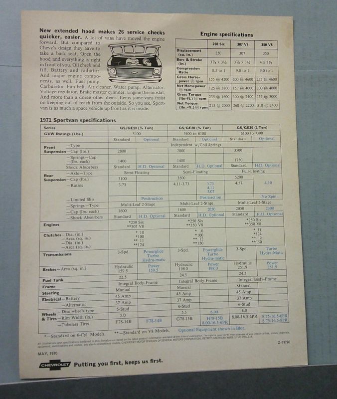 • Features 1971 Chevrolet Sportvan models including GS/GE10, GS/GE20 and GS/GE30
