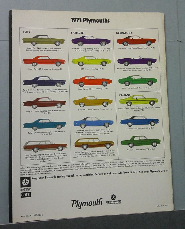 • Covers 1971 Plymouth models including Suburban and Satellite
