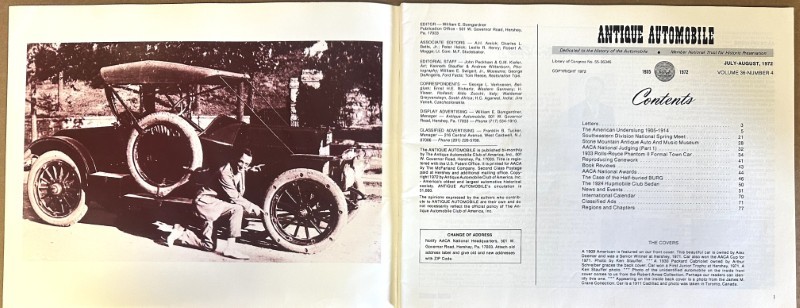 This is an original Antique Automotive sales literature piece. It features a promotional highlight for the Antique Automotive magazine.