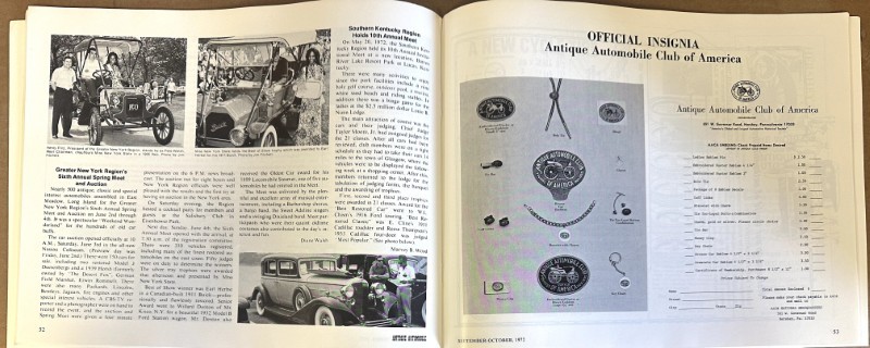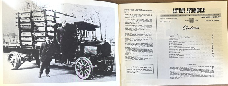 This is an original Antique Automotive sales literature piece. It features a promotional highlight for the Antique Automotive magazine.