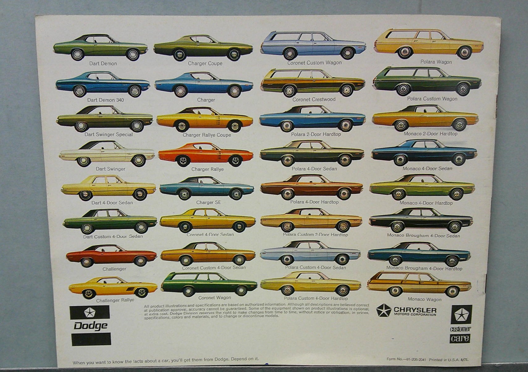 •  Covers 1972 Dodge models including Dart, Challenger, Coronet, Charger, Polara and Monaco