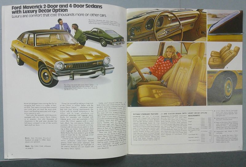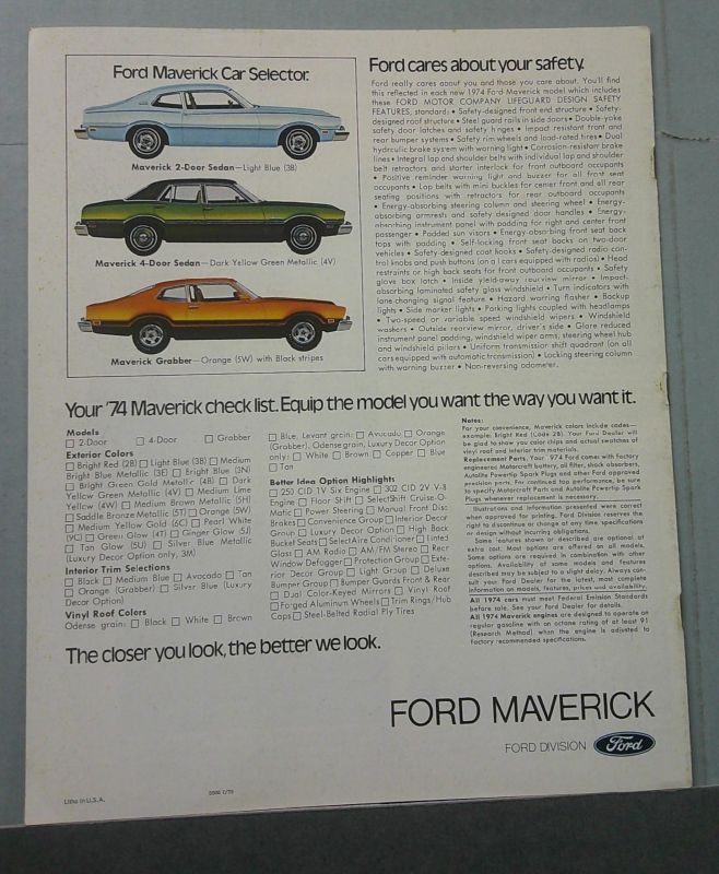 This is an original Ford sales catalog. It features promotional highlights for the Ford Maverick with full color pictures and specifications.