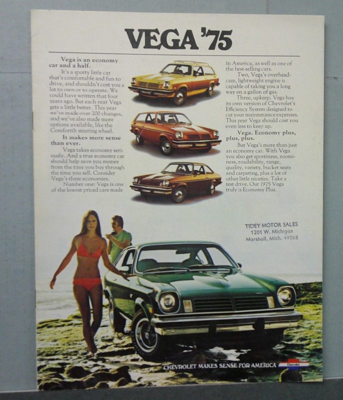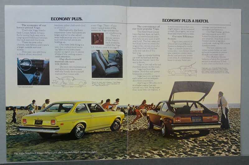 • Features 1975 Chevrolet Vega models including Hatchback Coupe, Panel Express, Estate Wagon, Wagon GT, and Hatchback GT