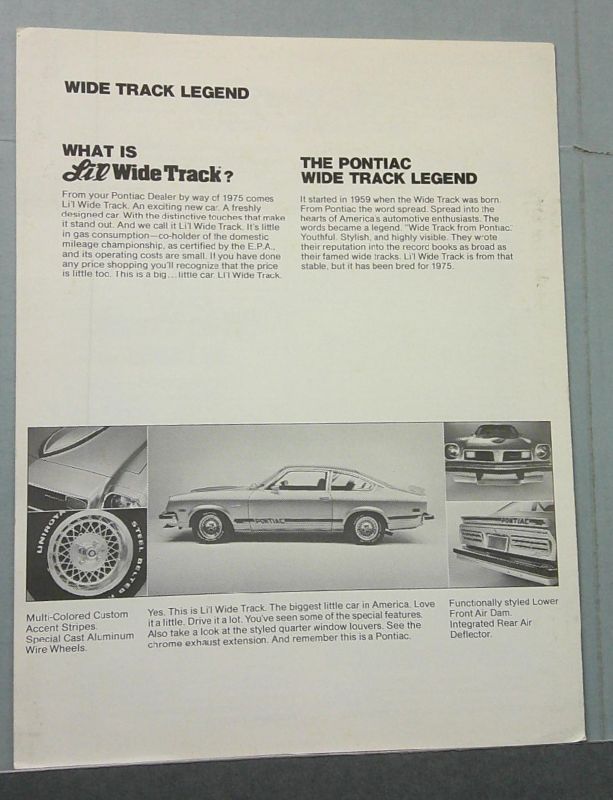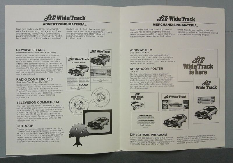This is an original Pontiac sales folder. It features promotional highlights for the Pontiac Li’l Wide Track Advertising material.