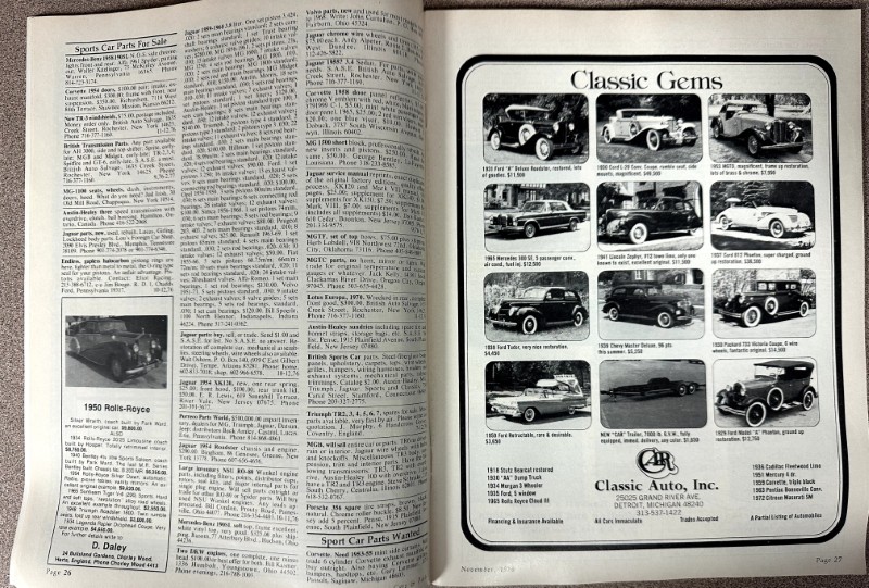 This is an original Cars & Parts literature piece. It features 1926 Wills Saint Claire with black and white photos.