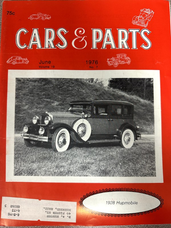 This is an original Cars & Parts literature piece. It features 1928 Hupmobile with black and white photos.