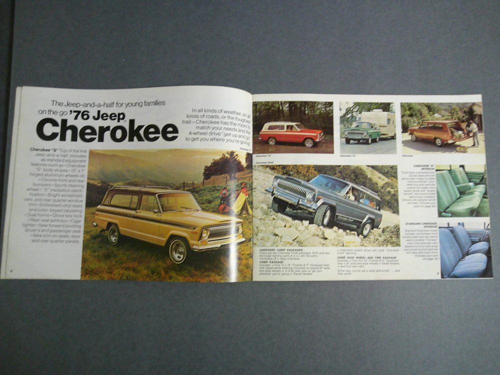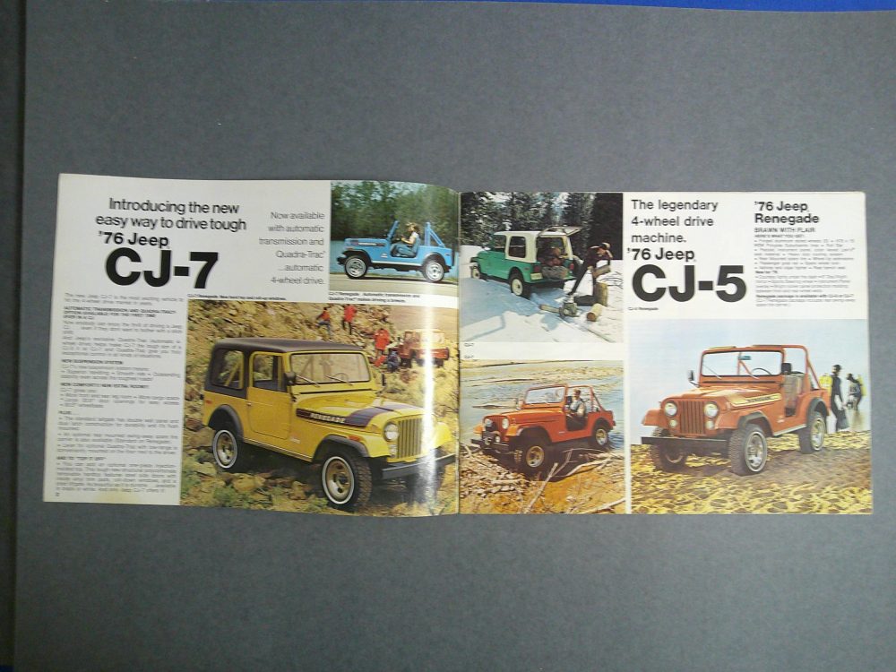 This is an original 1976 Jeep sales brochure. It includes detailed information on features and available options for Jeep’s full 1976 vehicle lineup.