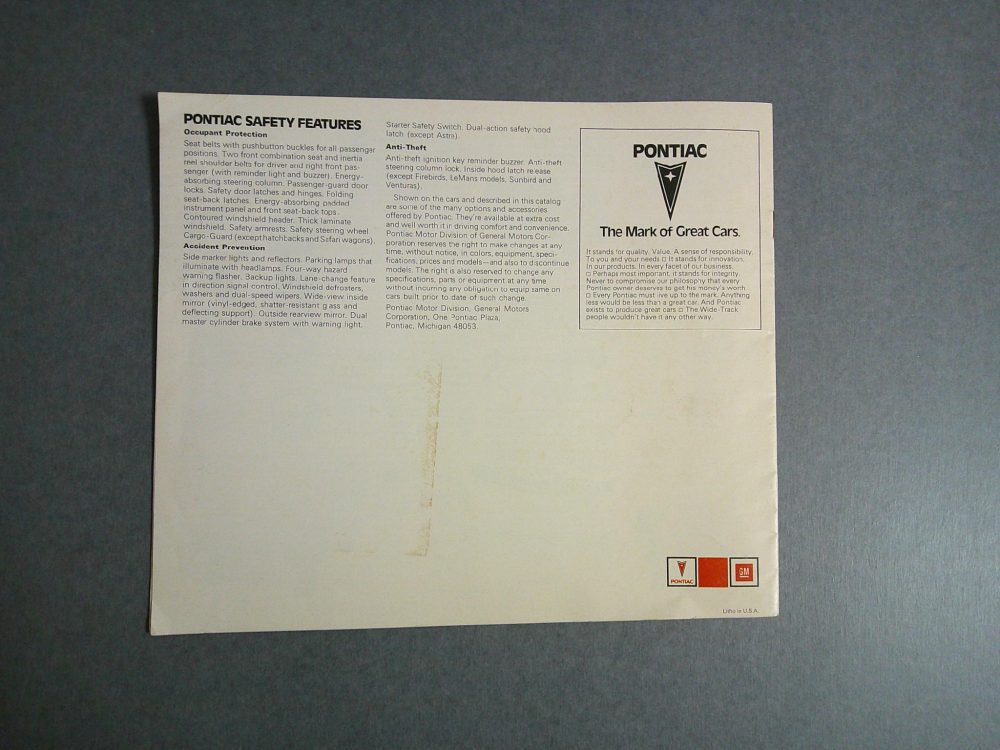 This is an original 1976 Pontiac sales catalog. It highlights information on features and available models across Pontiac’s full vehicle lineup for the 1976 model year.