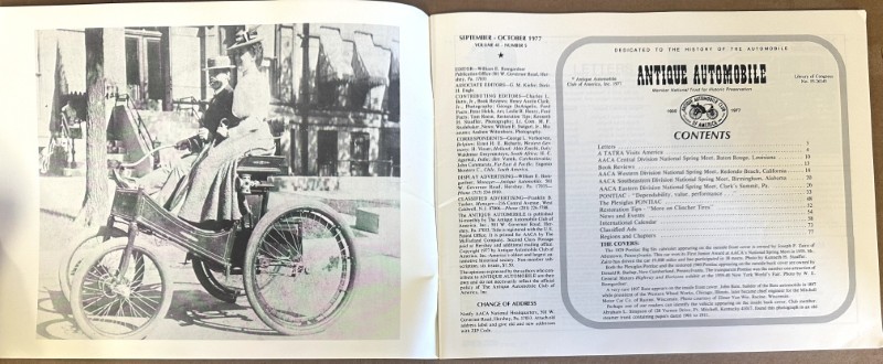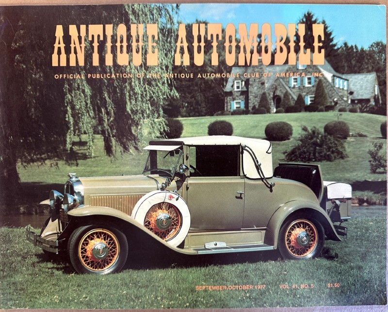 This is an original Antique Automotive sales literature piece. It features a promotional highlight for the Antique Automotive magazine.