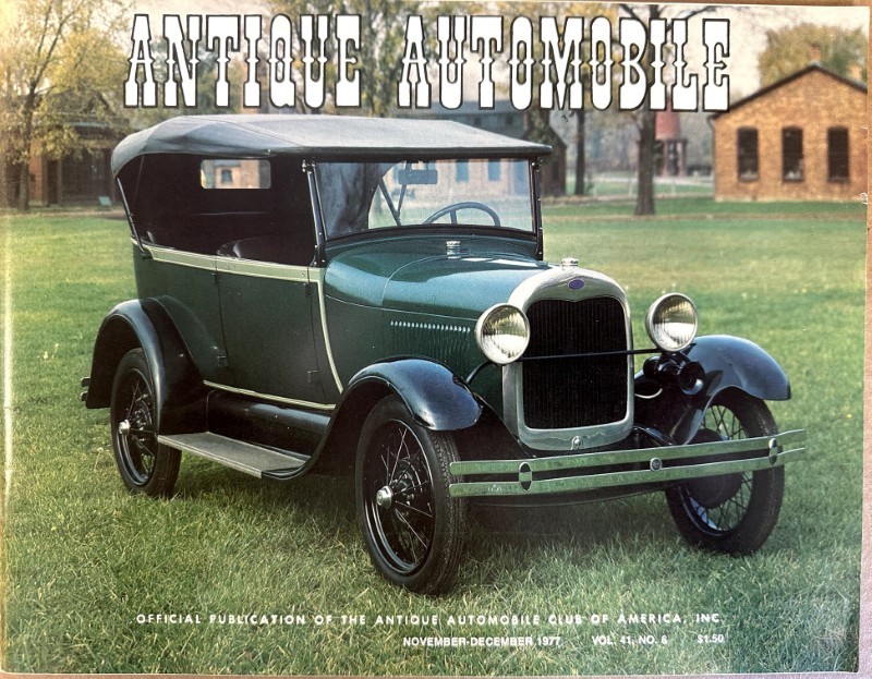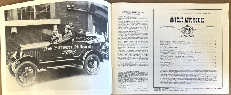 This is an original Antique Automotive sales literature piece. It features a promotional highlight for the Antique Automotive magazine.