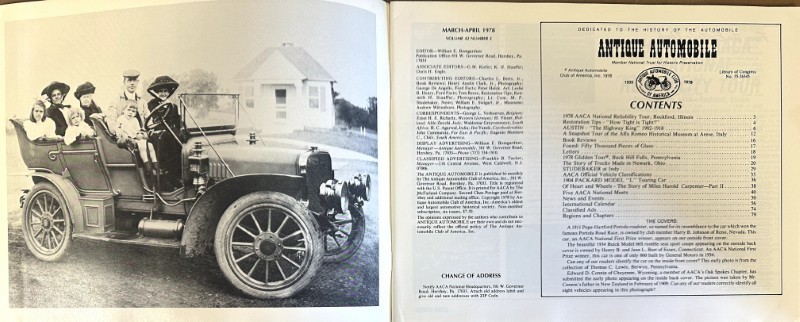 This is an original Antique Automotive sales literature piece. It features a promotional highlight for the Antique Automotive magazine.