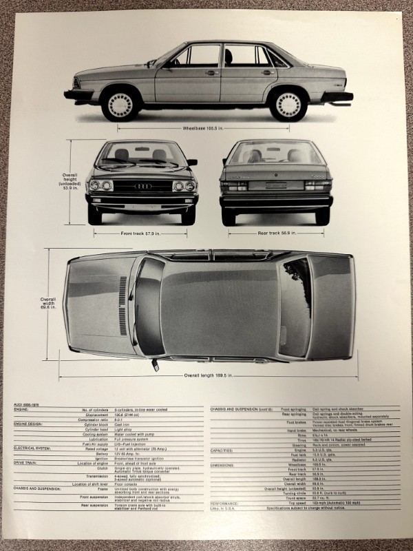 - Covers Audi 5000; specifications, options, features