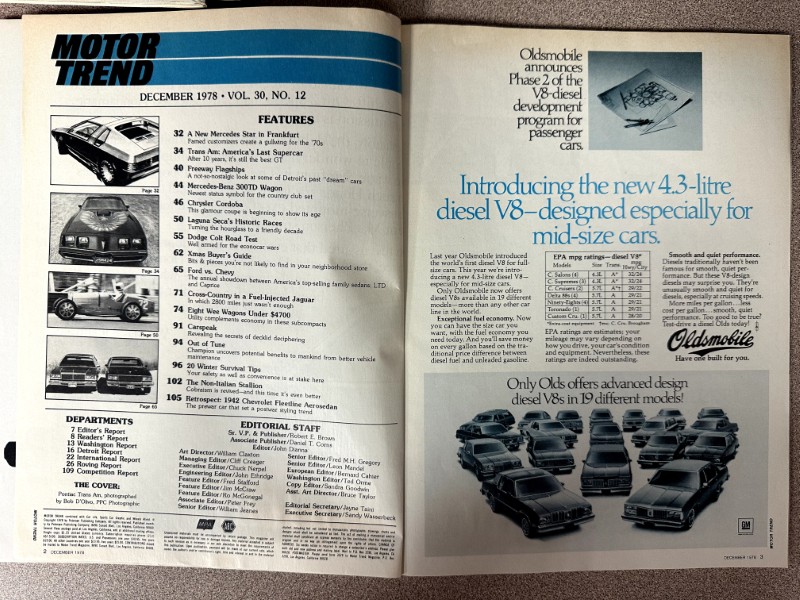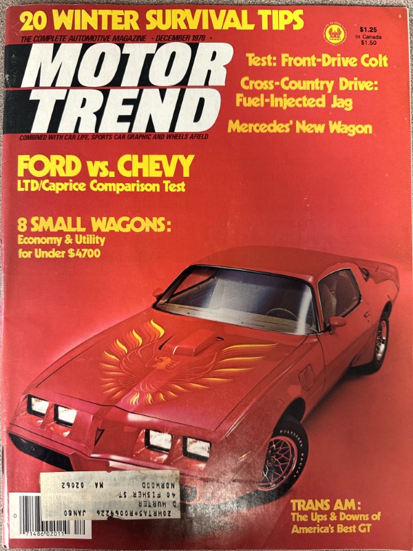 This is an original Motor Trend literature piece with black and white photos.