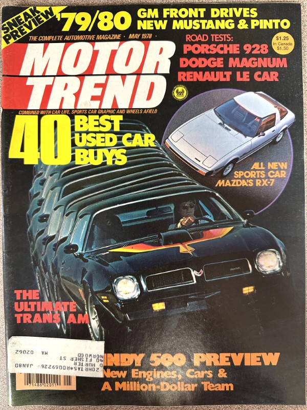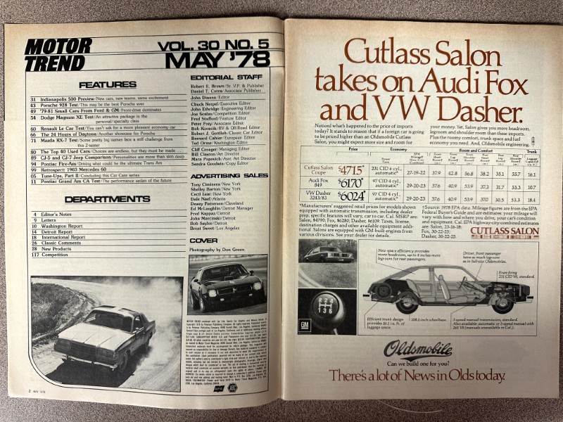 This is an original Motor Trend literature piece with black and white photos.