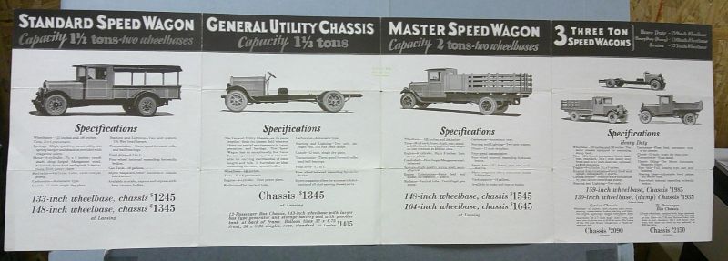 This is an original REO sales folder. It features promotional highlights for the REO truck lineup with illustrations and specifications.