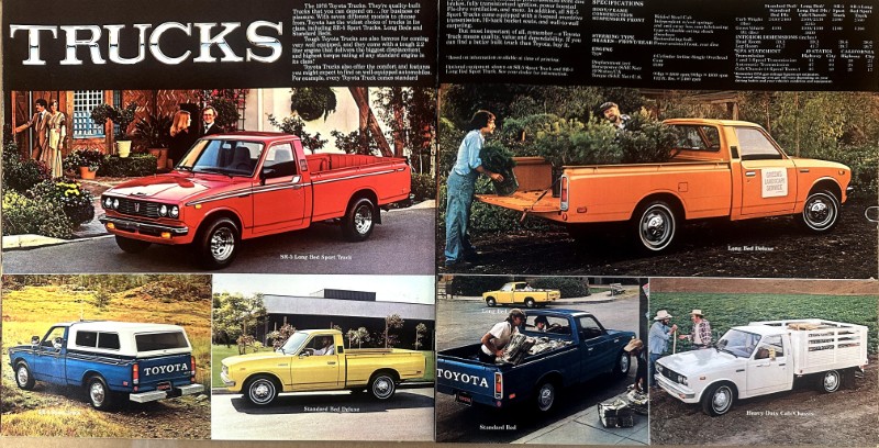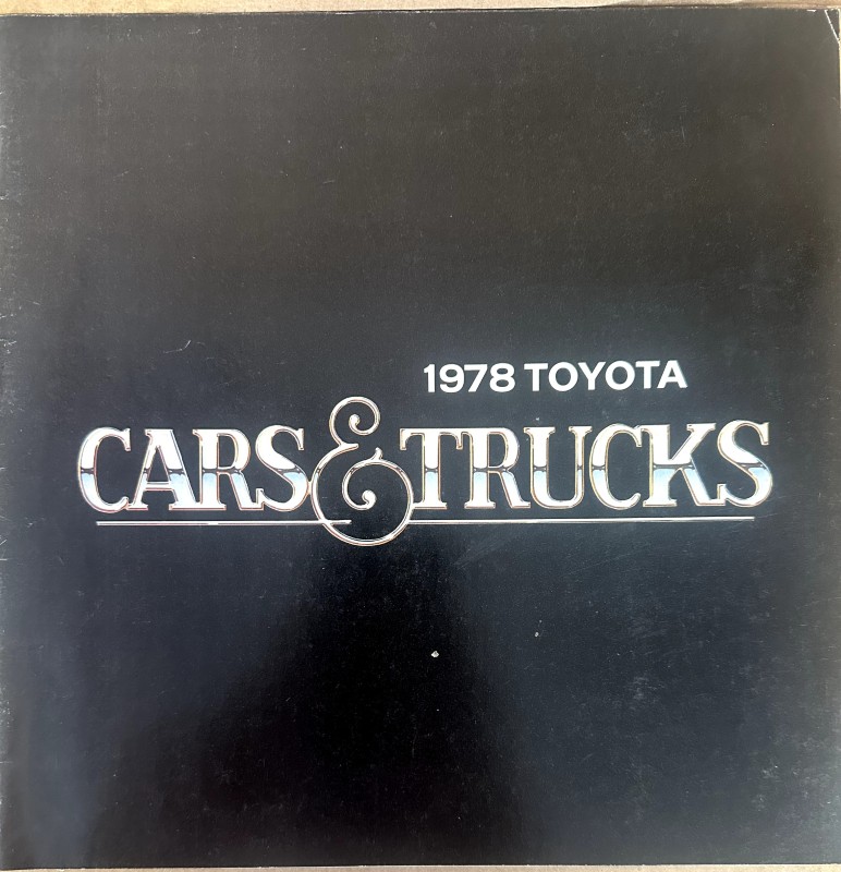 This is an original Toyota sales literature piece. It features a highlight on Toyota Cars and Trucks with colored photos.