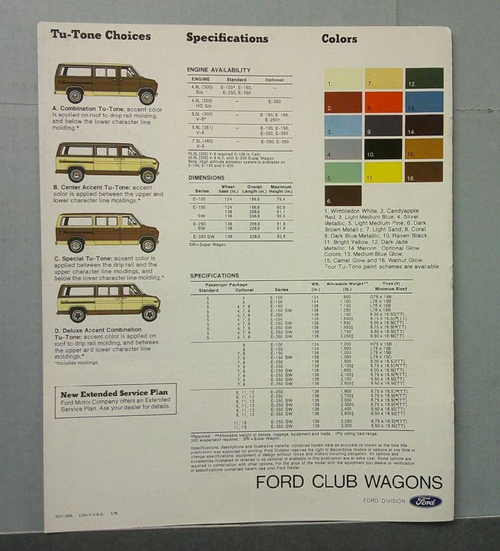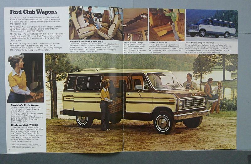 • Features 1979 Ford Club Wagon models including Custom and Standard
