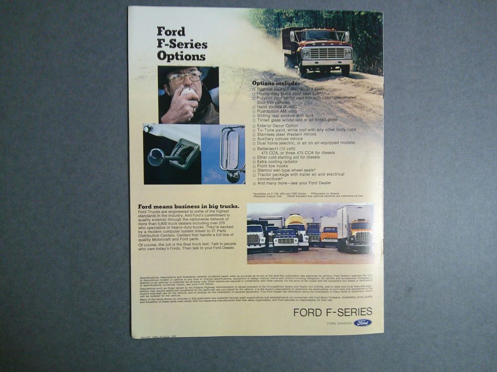 This is an original 1979 Ford F-Series sales brochure. It includes detailed information on features and available options for Ford’s heavy-duty pickup lineup.