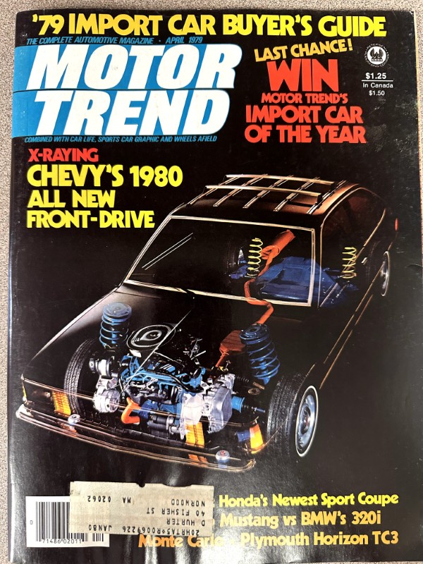 This is an original Motor Trend literature piece with black and white photos.