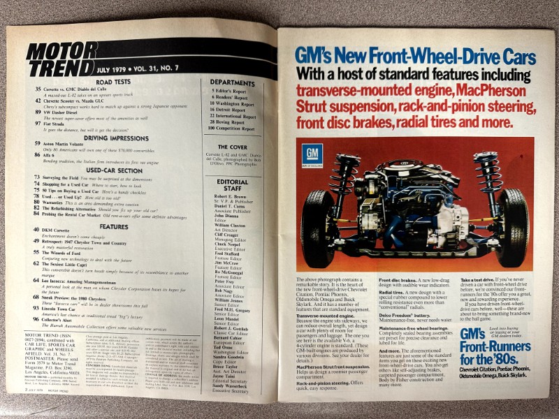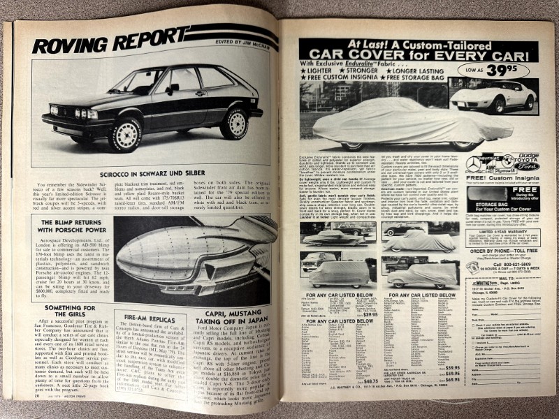 This is an original Motor Trend literature piece with black and white photos.