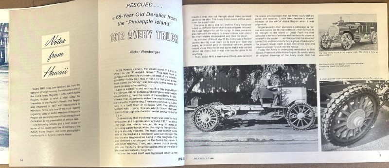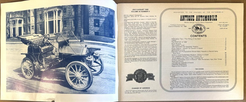 This is an original Antique Automotive sales literature piece. It features a promotional highlight for the Antique Automotive magazine.
