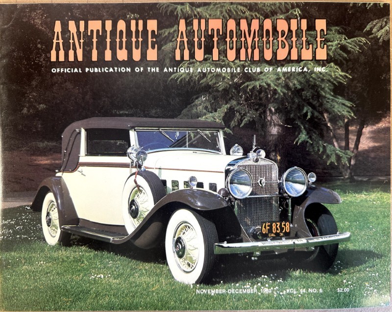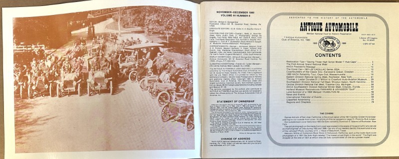 This is an original Antique Automotive sales literature piece. It features a promotional highlight for the Antique Automotive magazine.