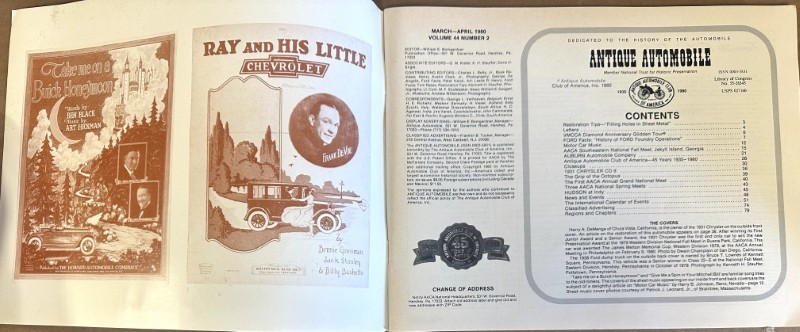 This is an original Antique Automotive sales literature piece. It features a promotional highlight for the Antique Automotive magazine.