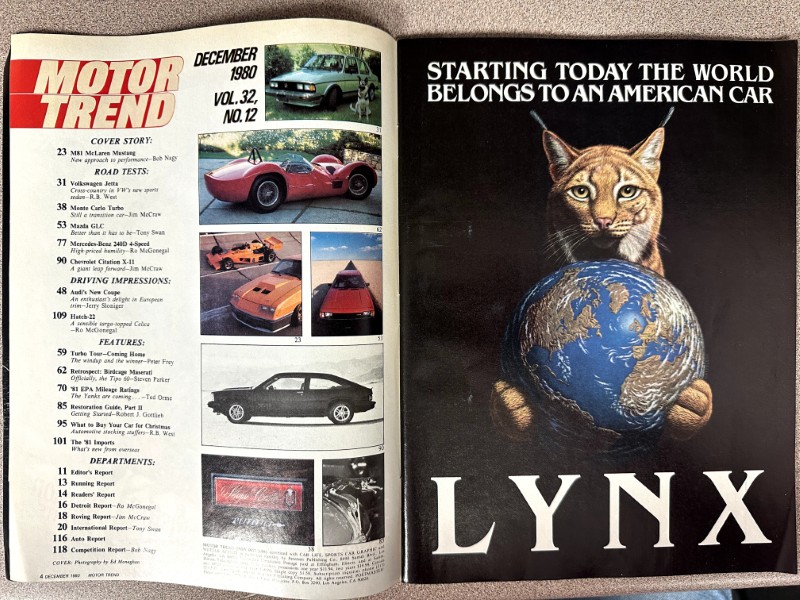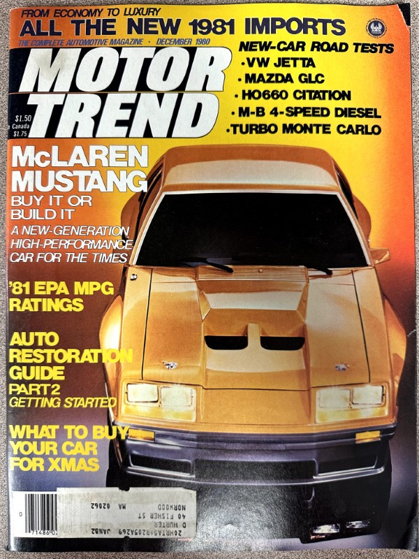 This is an original Motor Trend literature piece with black and white photos.