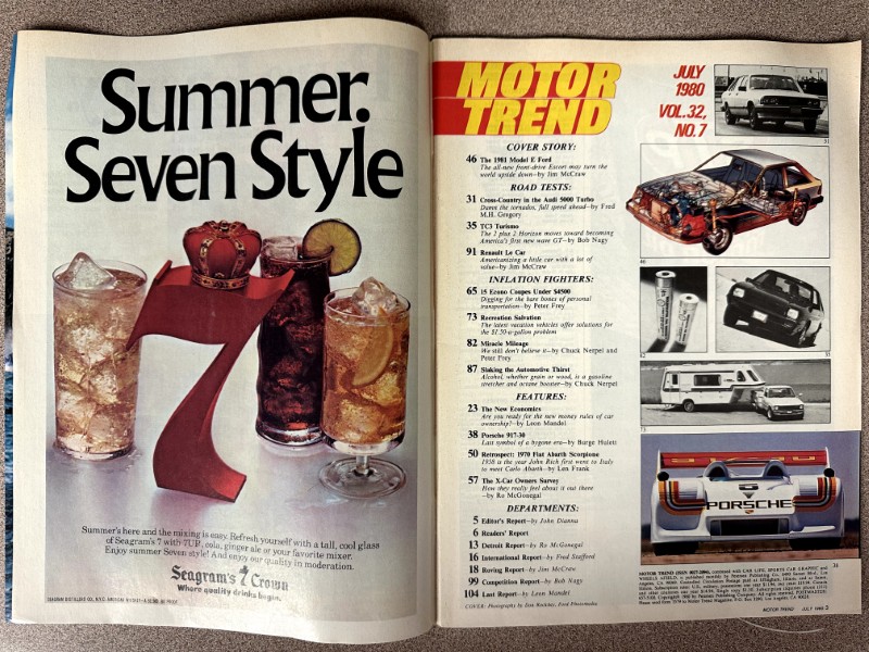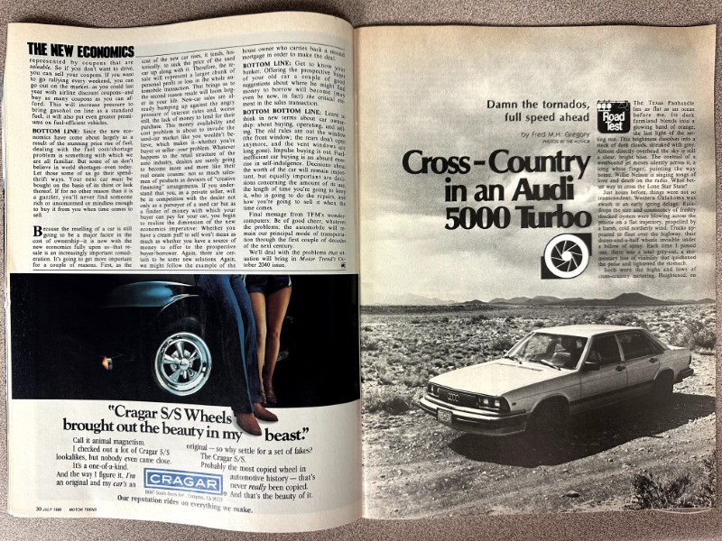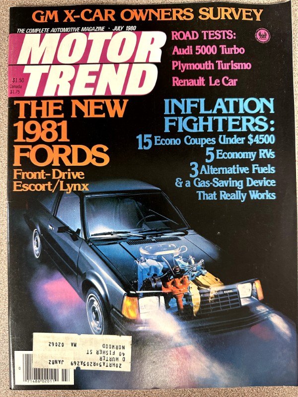 This is an original Motor Trend literature piece with black and white photos.