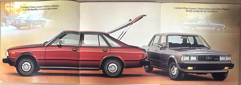 This is an original Toyota sales literature piece. It features a highlight on Toyota Corona with colored photos.