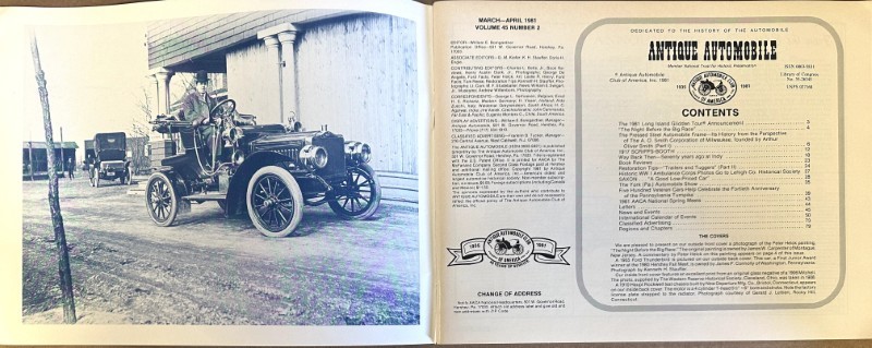 This is an original Antique Automotive sales literature piece. It features a promotional highlight for the Antique Automotive magazine.