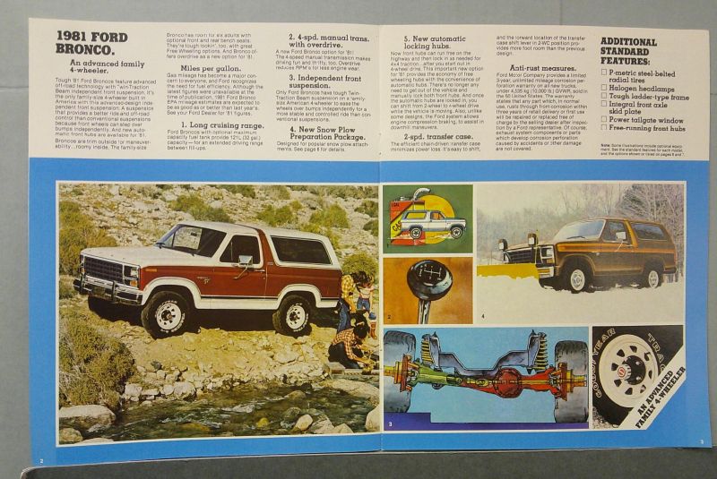 This is an original Ford sales catalog. It features promotional highlights for the Ford Bronco with full color pictures and specifications.