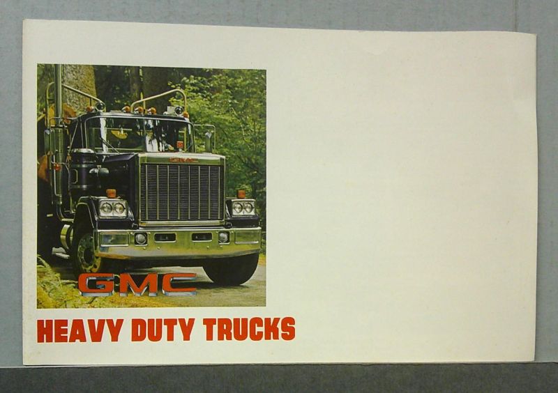 This is an original GMC sales catalog. It features promotional highlights for the GMC heavy duty truck lineup with full color pictures and specifications.